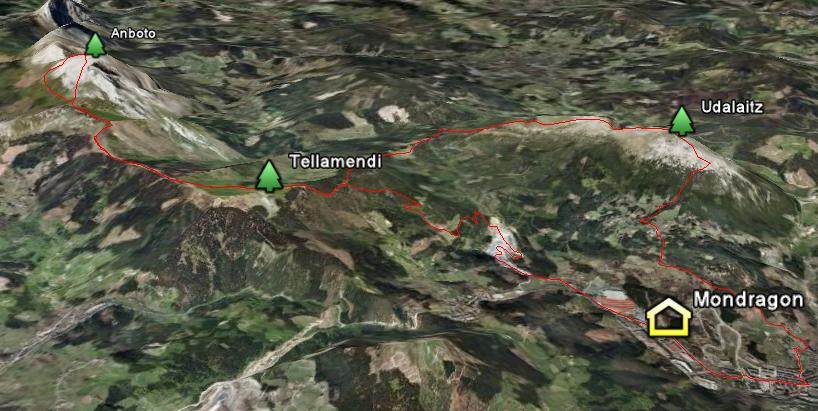 Dicho entrenamiento, llevado a cabo el 9 de Abril, en un día brutal de la primavera, típicamente veraniego, consistía básicamente en subir Anboto y Udalaitz desde Mondragon. La ruta de aproximadamente 35 kilómetros.