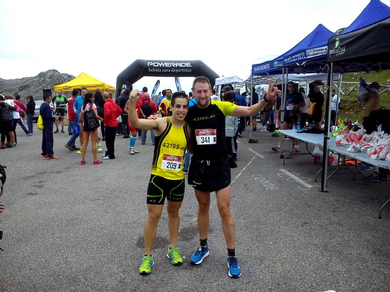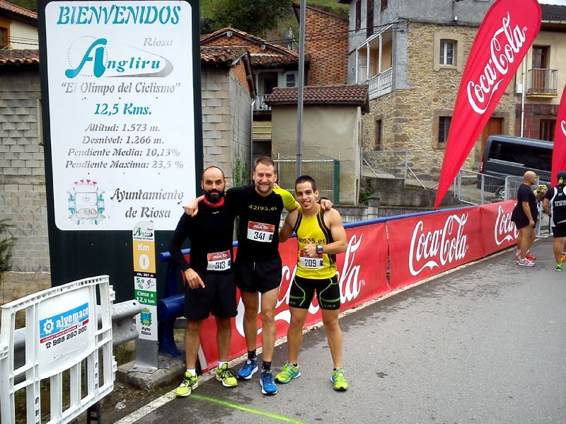 Dejando de lado el miedo pero no el nerviosismo me veo en la línea de salida junto a los grandes Mikel Aingeru y Juan Gordo. Dan el pistoletazo de salida a las 10:45 y la subida empieza. Primer kilómetro rápido y ya empiezo a notar las piernas pesadas. Los entrenamientos de la semana se empiezan a notar. No obstante consigo llevar un ritmo "cómodo" y constante hasta el km5-6 donde se encuentra el primer descanso y en el que aprovecho para liberar piernas y darles caña. Pues no asustaba ni mucho menos El Angliru... de momento.