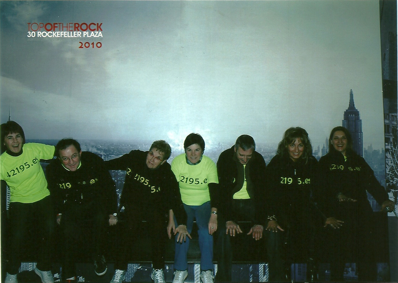 Os mando una foto del grupo que ya que no corrió la Maratón, quisimos dejar bien alto el logo de 42195.es, por lo que subimos a Rockefeller Center y bien pertrechados nos hicimos la foto de recuerdo.