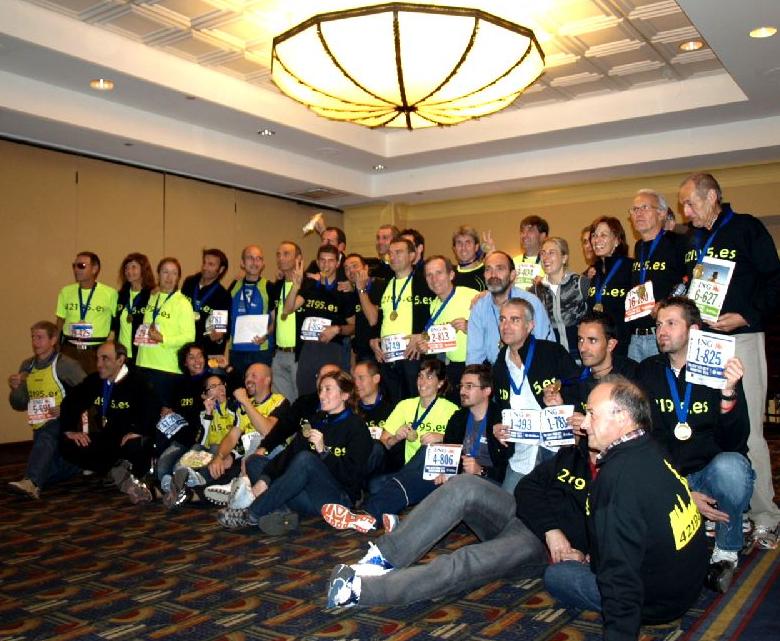 En cuanto me monté el pasado cinco de noviembre en el autobús que nos llevaba al Aeropuerto de Barajas noté la alegría e ilusión de todo el grupo, incluidos nosotros, así como el espíritu de los que iban a correr a nivel competitivo: querían participar, terminar la prueba, y la marca que deseaban realizar estaba en segundo plano, pero hacían pronósticos aproximados a la marca que creían poder lograr basándose en otras pruebas populares, medias maratones o maratones en las que anteriormente habían participado. Me contaban los días que entrenaban a la semana; que los deberes familiares y el trabajo les impedía entrenar lo que querían, desde cuando entrenaban; y que por narices había que terminar la prueba. .... y que después venía lo bueno, el hacer turismo y compras, muchas compras. Los acompañantes, que éramos más numerosos, íbamos a ver la prueba, aplaudir y hacer, sin correr, lo mismo que ellos.