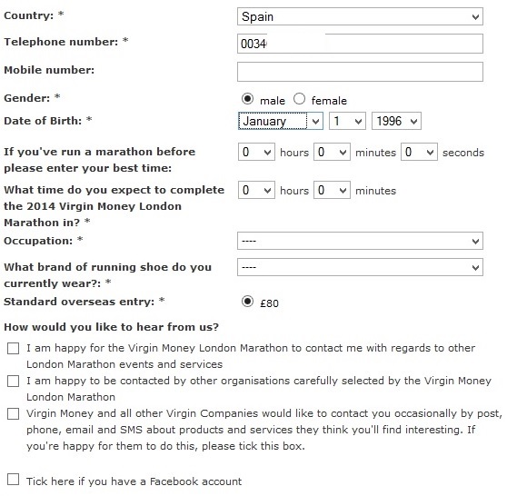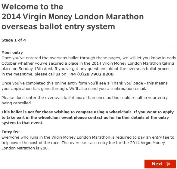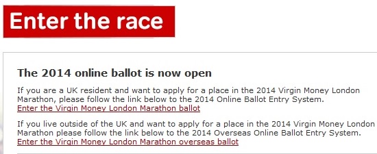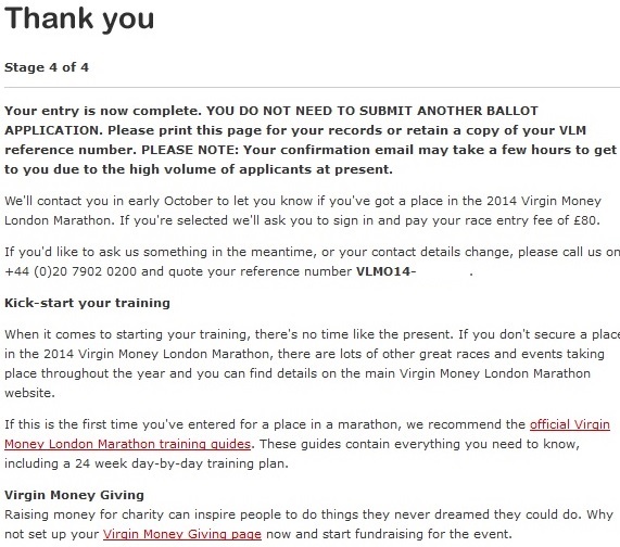 "Thank you for entering the overseas ballot for the 2014 Virgin Money London Marathon