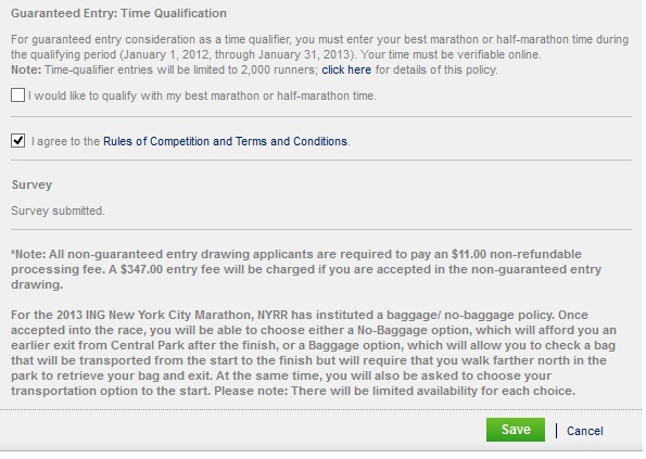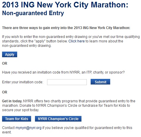 Desde 42195.es hemos hecho un proceso de inscripción. Hacer este proceso cuesta 11 dólares y en caso de ser "aceptado" automaticamente te harán el cargo de 347 dólares para los corredores que no sean de Estados Unidos. NO SE PUEDE DEVOLVER.