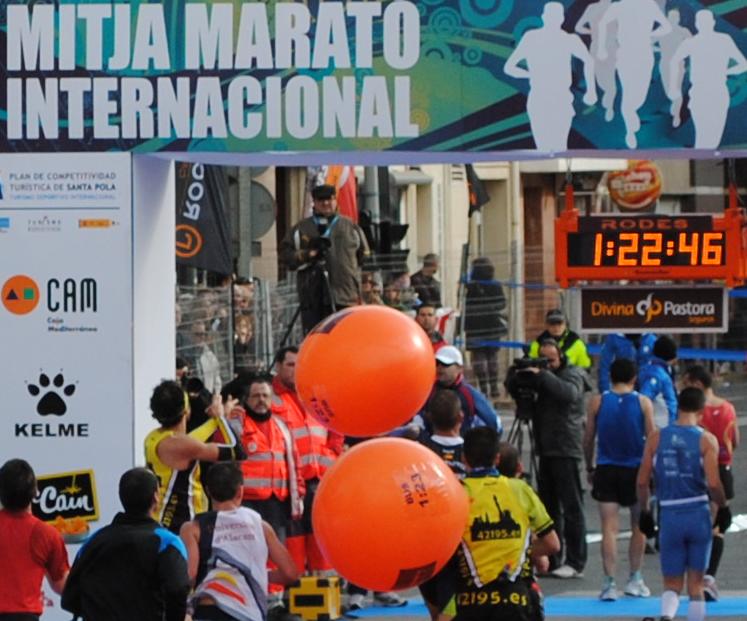 La organización de la XXII Media Maratón Villa de Santa Pola puso a disposición de 42195.es dos globos con el tiempo de 1h23m.