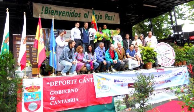 La mañana amaneció desagradable y estuvo lloviendo intensamente durante mucho tiempo, durante el calentamiento nos empapamos con la tromba de agua que cayó, pero para el Km. 5 de carrera dejo de llover y pudimos correr en buenas condiciones, con una temperatura de 17 grados con mucha humedad. La carrera empieza en el pueblo de Oruña de Pielagos y tras dar una vuelta por el pueblo pasando dos veces por el puente romano se toma la carretera que va subiendo por la margen derecha del rio Pas hasta el pueblo de Renedo (capital del municipio de Pielagos) allí se da una vuelta y se cruza el rio para volver ahora por la margen izquierda del Pas siguiendo el camino del agua, lo que nos indica que vamos para abajo y aunque con varios toboganes, se nota que bajamos.