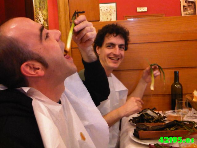 Nos habían recomendado ir al Poble Espanyol que había organizada una "Calçotada popular" pero para cuando llegamos ya no quedaban tickets y tuvimos que buscar otro sitio para poder degustar los famosos "calçots" catalanes. Que bueno es tener amigos en todas partes, que te llevan a un restaurante típico de la zona donde poder degustar la gastronomía local a muy buen precio.