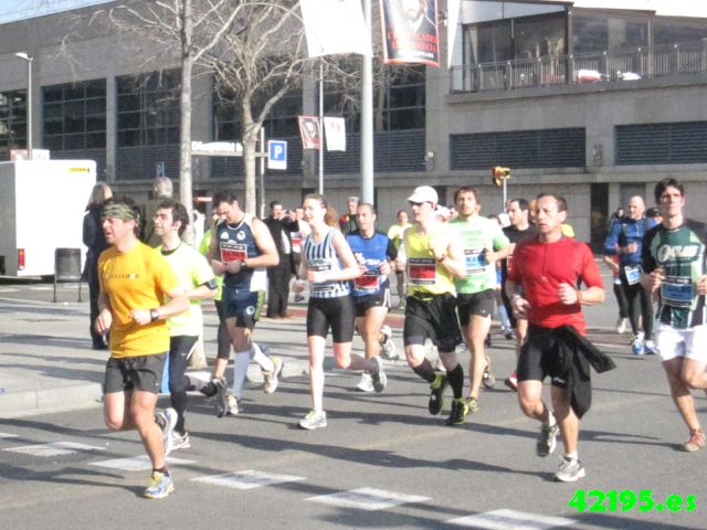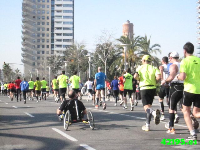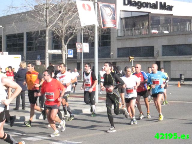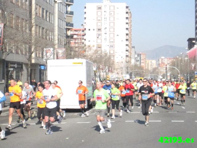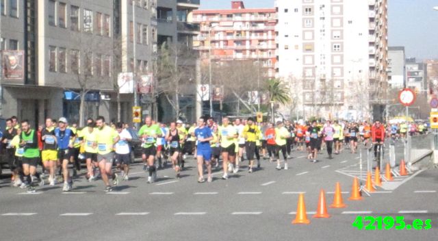 8:45, pistoletazo de salida. La gente aplaude, mi pulsómetro se dispara pero nadie se mueve (bueno, Abel Kirui y sus amigos sí y no poco). A los 2 minutos paso por la salida y desde el principio se puede correr sin agobios ni empujones. Las calles de Barcelona son anchísimas y aunque tengas que esquivar corredores siempre encuentras algún sitio para pasar. Vamos directos hacia la estatua de Colón y los 2 primeros km el reloj me dice que no voy mal (4' 23 y 4' 24). Sigo corriendo cómodo y como Paco Martínez Soria en "La ciudad no es para mí", mirando a todos lados con cara de pueblerino y disfrutando de la gran Barcelona.