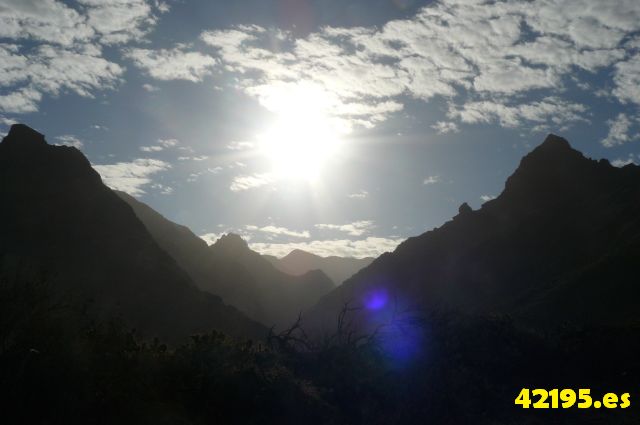 Empezó la subida y ya cada uno tiramos lo que pudimos... Llegue a Chinamada 3º. Un recorrido impresionante subiendo un barranco precioso con miradores varios y unas vistas increíbles... eso si durísimo... En Chinamada estaba el avituallamiento. Así que un platanito un poco de isotónico y a seguir el recorrido... esta segunda parte, muy diferente a la primera....mucho más cómoda para correr prácticamente todo el recorrido.