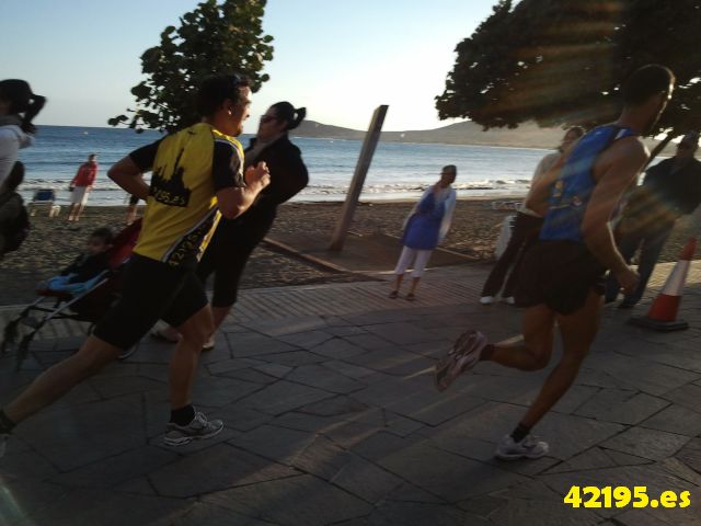 Que mejor fecha que una San Silvestre, así que dicho y hecho... corrí la primera edición de la San Silvestre del Medano. Una carrera de 5km muy popular en la que participamos 250 personas aproximadamente. Mucho ambiente y mucha gente disfrazada....Yo intente salir rapidillo aunque esta distancia no es la mejor para mi, y aunque sufrí bastante.....al final contento...Quede el 17 y me salió un ritmo de 3.32....