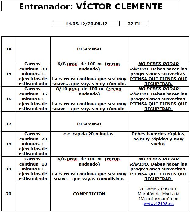 Los entrenamientos para esta semana previa a la Zegama Aizkorri 2012 serían: