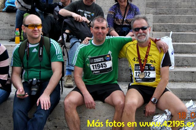 Pasamos por la Fontana de Trevi, de allí salimos al Monumento de Vittorio Emanuele y ya se veía a nuestra izquierda el Coliseo, lo rodeamos por la derecha, cuesta arriba, una vez lo rodeamos solo nos quedaban los últimos 500 metros de ligera bajada para pasar por el arco de meta, al final 4 horas 19 minutos.