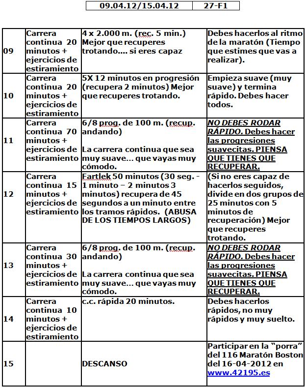 Además de esta gran prueba, en mente el maratón de primavera que disputaremos el próximo 22 de Abril. Estos son los entrenamientos diseñados por Víctor Clemente a falta de sólo 2 semanas:
