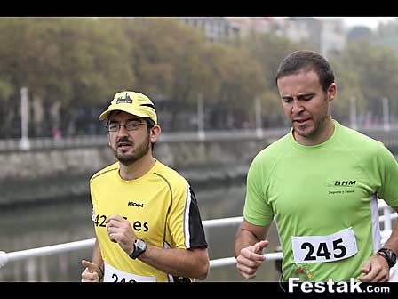 La verdad es que la mañana no acompaña y llegando a meta nos tira una buena tromba de agua, lo cual resta un poco de lucidez a la llegada y sobre todo a la presencia de público. Llegamos a meta en unos 48 minutos, ya que no ni Koldo ni yo aparecemos en la clasificaciones.