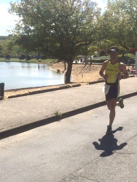 Llegada a la T2 y a correr. Le verdad es que la parte de carrera me fue bastante mejor de lo esperado, eran 3 vueltas a un circuito de 3 km, y en las 3 vueltas hice mas o menos lo mismo: primer y tercer km a 4:35, y el segundo km a 5, había una cuesta en ese km que mataba completamente, primero para arriba muy clavados, y luego para abajo, teniendo que frenar un montón para no irme al suelo. El circuito daba la vuelta al lago, combinando asfalto y pistas, muy bonito.