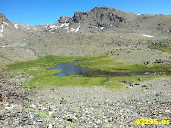 Tras poco más de 4 horas llegamos al punto buscado, pero simple con la idea de llegar a la cima de la península, el Mulacen. Tras pensarlo detenidamente, decidimos que no era el día ni el momento para que Aiyana con sus 11 añitos recién cumplidos, afrontara otros casi 4 kilómetros y 2 horas más de ascenso en el mismo día, teniendo en cuenta que nos quedaban más de 10 kilómetros de difícil bajada.