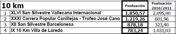 Segðn la Federación Española de Atletismo, en 2010-2011 fueron los segundos mejores 10km de España.