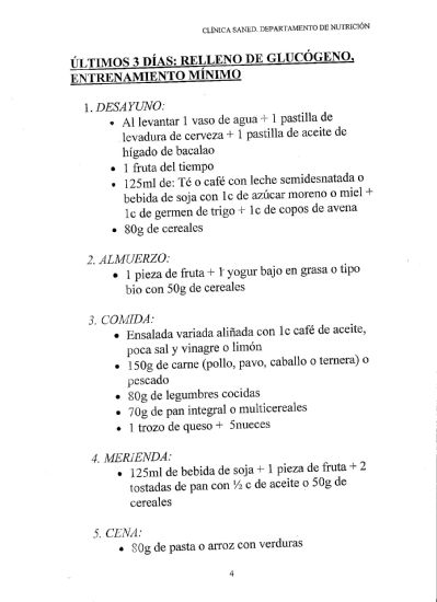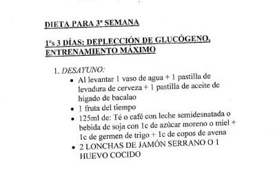 Adjuntamos la dieta que nos ha preparado Carmén, desde el departamento de nutrición de la Clínica Saned, para la próxima semana,,,, estar atento a la actualización de la semana que viene donde nos prepara la dieta previa y post Maraton Nueva York... muy muy interesante.