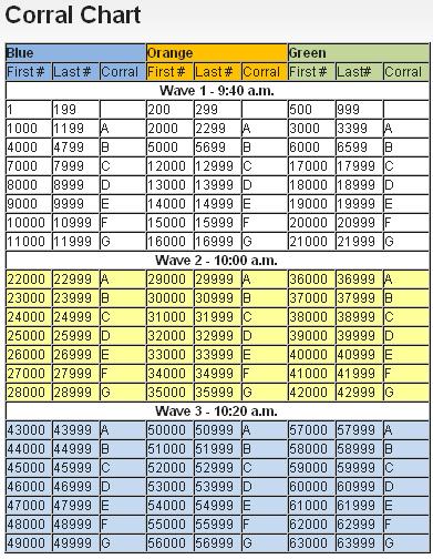 • Los corredores serán asignados una franja horaria de la salida, que no puede ser cambiada cuando se han impreso los números de la carrera. Refiera por favor a su número de la carrera para su hora y localización de salida.
