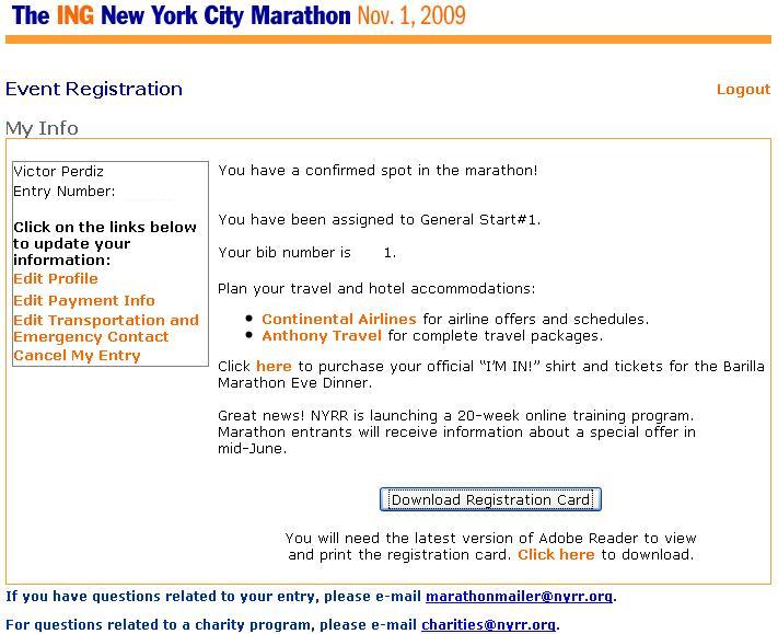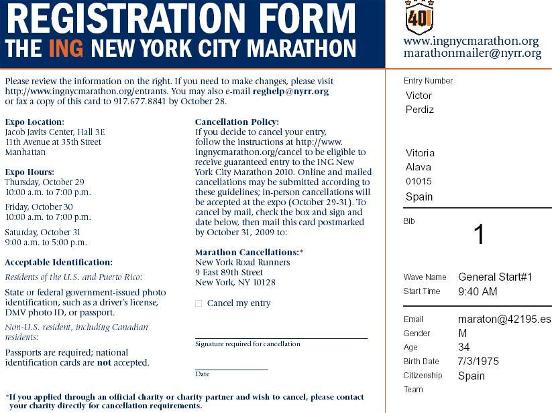 Al principio de 2009, los participantes que cancelaron so entrada del correo en 2008 será enviado instrucciones de suscripción para garantizar su participación en el maratón de 2009. Tendrá que enviar la inscripcieon antes del 1 de mayo del 2009. Si no recibe dichas instrucciones, tendrá que preocuparse usted mismo de hacer la inscripción antes de la fecha de cierre.