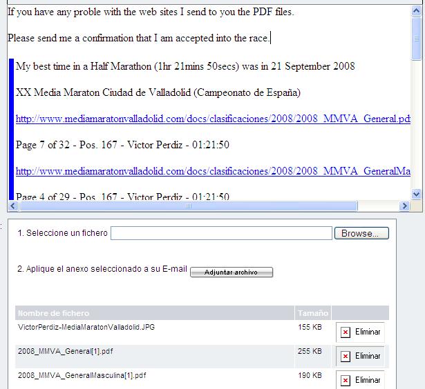 Por si acaso, le enviamos un segundo email, con las clasificaciones en formato PDF previamente descargadas de la página web a la que haciamos referencia.