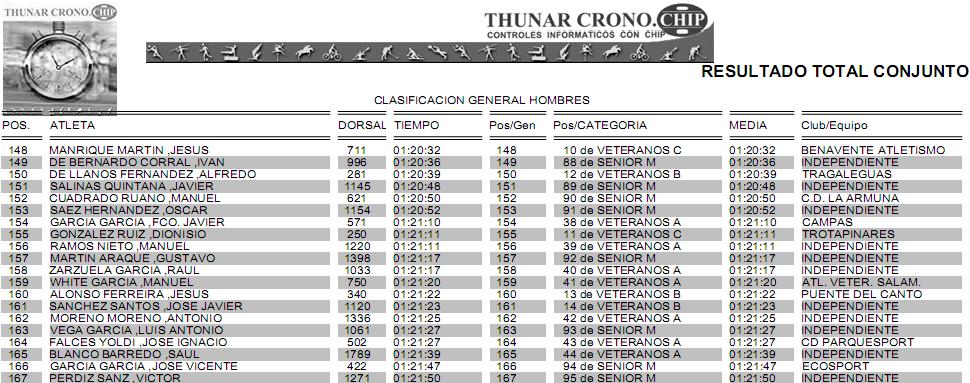 HOMBRES EDAD 18-39 AÑOS: 1:23:00 MEDIA MARATON 2:55:00 MARATON