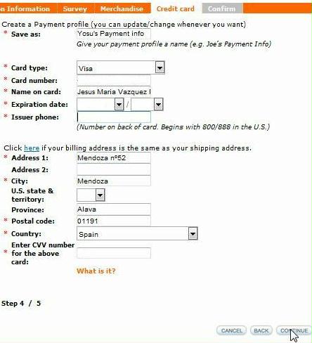 PANTALLA 3 - RELLENAMOS LOS DATOS QUE NOS PIDEN Y "CONTINUE"