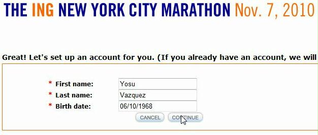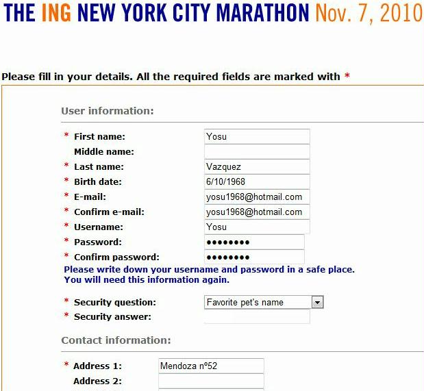 A continuación os mostramos un ejemplo de todo el proceso de incripción para la Maratón Nueva York 2010... no tiene desperdicio... SÓLO VALIDAS HASTA EL 15 DE MARZO 2010 (23H 59m hora in New York, New York)