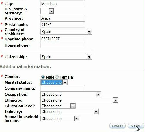 PANTALLA 4 - SEGUIMOS RELLENANDO DATOS Y AL FINAL PULSAMOS "SUBMIT"