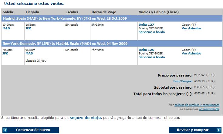 Nosotros hemos cogido el siguiente vuelo a través de la página de www.travelclub.es