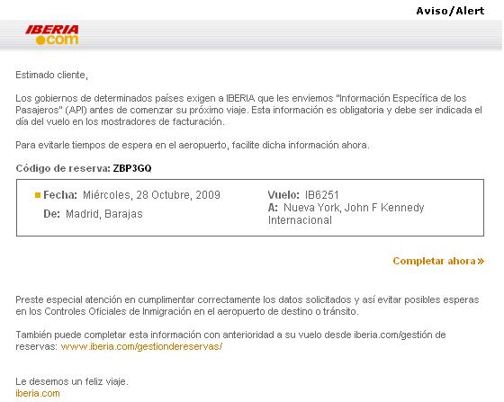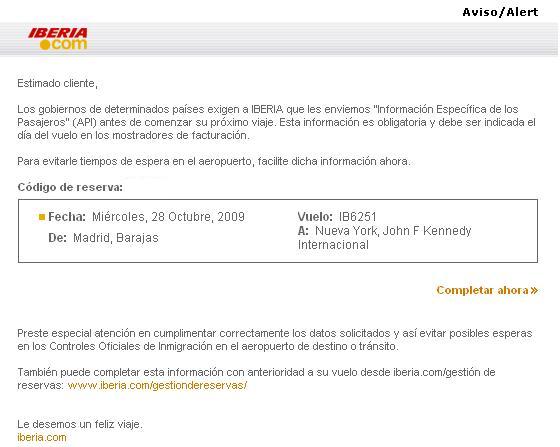 Nos ha llegado un email de Iberia que hemos rellenado del siguiente modo.