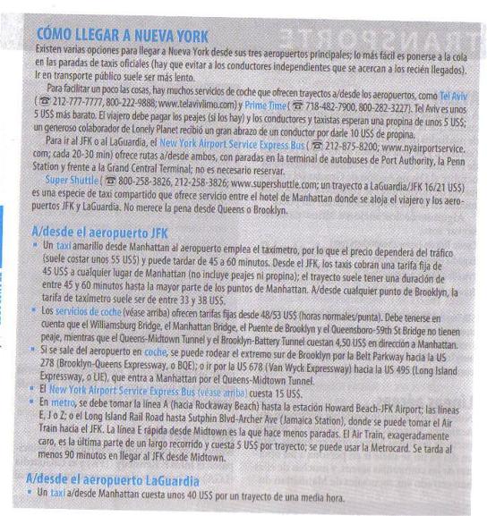 - Fija el precio del taxi antes de ir del aeropuerto a manhattan o al revés...evitarás problemas. La propina del 15% no está incluida en el precio del taxi, pero hay que darla. En las comidas, mira la cuenta para ver si está incluida o no.