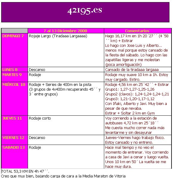 DESCANSO... | Pero, si no compites el sábado, haces el entreno del día 17 de enero de 2.009. | |
