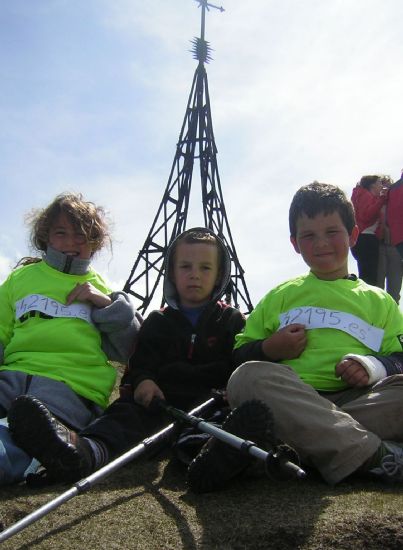 "No sé si “alguien” te habrá mandado esta semana alguna instantánea desde la cima más popular de nuestros montes (del Gorbea), pero para que no os falten, aquí te envío otro par de ellas: mismo día, mismo lugar, pero unas 6 horas más tarde un variopinto grupete de excursionistas se ven en una encrucijada. Como La Gran Manzana pilla un poco lejos y no hay suficientes bokatas en la mochila para afrontar el viaje, deciden enfilar hacia la cumbre del Gorbea…sólo los más decididos consiguen hacer cumbre a pesar del viento reinante (por cierto, ya ves que lo de las tallas infantiles comienza a ser urgente…)"