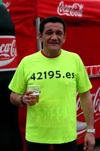 Bueno os adjunto un par de fotos con 42195 tras la carrera, si observáis bien en una estoy con una cerveza (En fin... Con moderación no es mala, jejeje..., también es reconstituyente ¿No?) Gracias y... ¡¡Mucha suerte en New York!!.