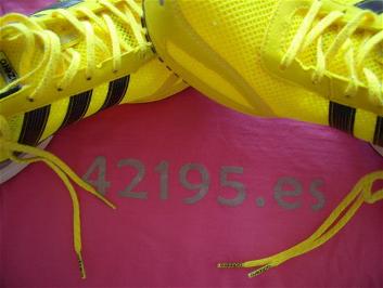 Os preguntareís por qué... porque con ellas Haile Gebrsselassie batió el record del Mundo de Maratón en la última edición de la prueba de Berlín.... y ahora están en nuestros pies... en breve os mostraremos alguna foto. Es el modelo Adizero Adios... que en los pies de Gebre dijeron "adios" a su anterior record del mundo... unas auténticas voladoras !