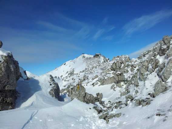 Si lo hago por la misma canal, se me quedara un poco corto el recorrido, además de que no me apetece destrepar esos resaltes que he escalado para subir. Si hubiera mas nieve…
