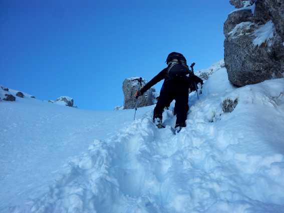 Rampas de 50º e incluso mas, y varios resaltes comprometidos si no tienes cierta habilidad, hacen que esta trepada, sea muy entretenida.