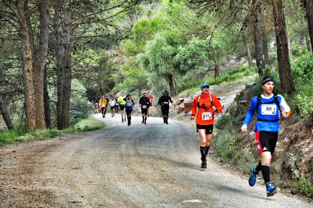 Al llegar de nuevo al punto ya había pasado toda la carrera por delante, así que inesperadamente me veo en las últimas posiciones de la carrera. Me junto con un compañero al que vamos a un ritmo bastante bueno, y comenzamos la remontada. Km 28, subida a la Sierra Cabrilla, de 1500 metros de altitud, comienzan a caer copos de nieve, evidentemente hace frío, y los gemelos comienzan a subirse, posiblemente por subir el ritmo para escalar posiciones en kilómetros anteriores.