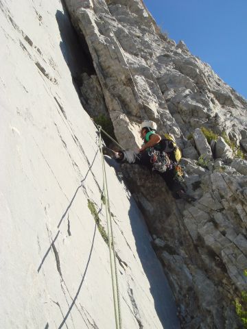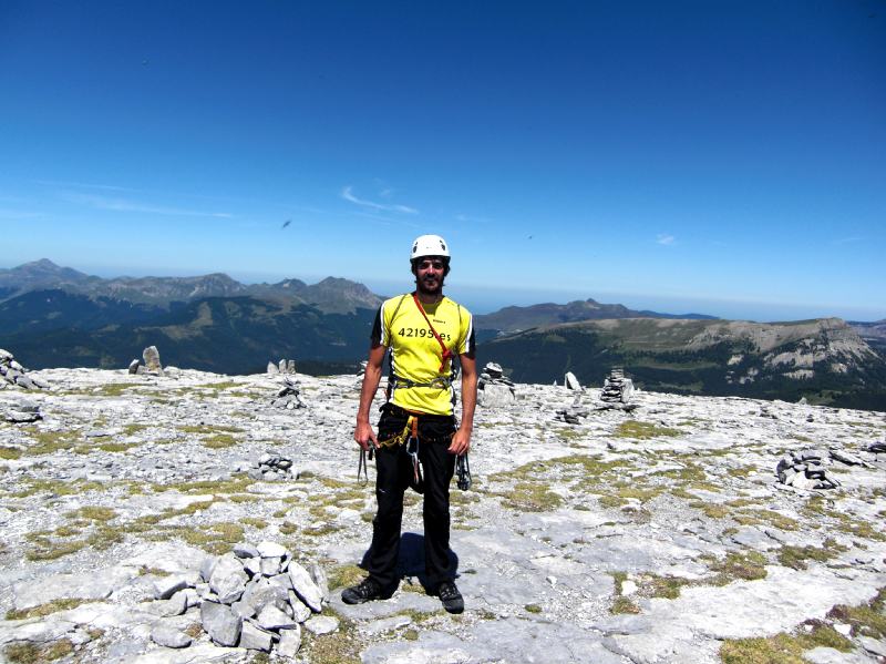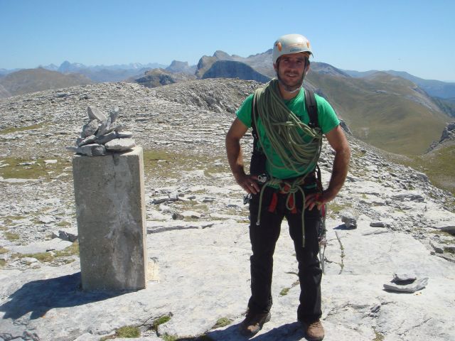 Una de las vías más espectaculares es la llamada Esminu, que en 7 intensos largos empalma con la ruta ordinaria de la arista este. Estuvimos a principios de agosto, disfrutando de una inmejorable jornada de sol y montaña.