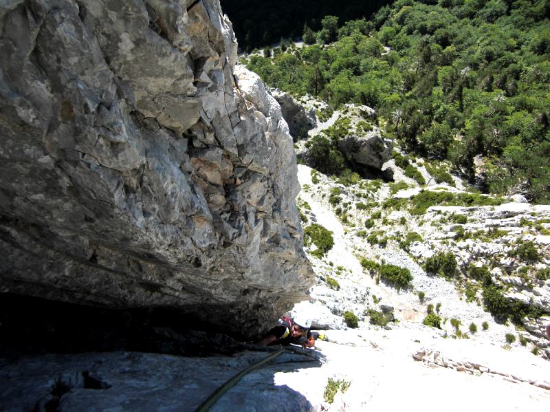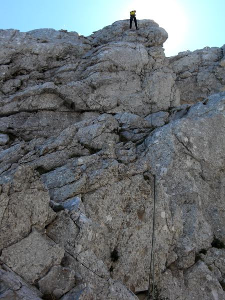 La trepada de la arista se puede iniciar desde su base, o, alternativamente, remontando una pared equipada con diferentes vías de escalada, lo que permite combinar una actividad de escalada y trepada para alcanzar la cumbre. En mitad de la ascensión se realiza un bonito y largo rápel para salvar un promontorio rocoso.
