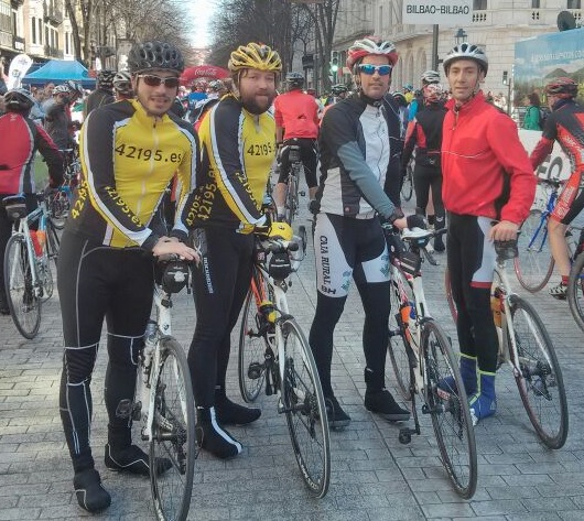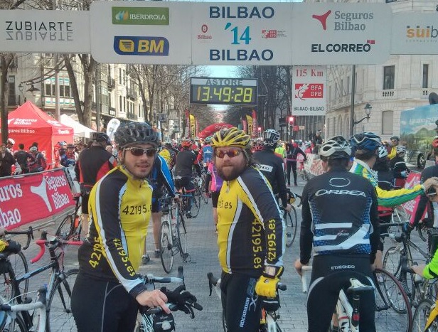 "Pues con grandes dudas en un primer momento, pero animado por el buen tiempo que habían prometido y la compañia de dos grandes amigos y "makinas" del ArabaTri, Ander y Alberto, con los que de vez en cuando salimos a pedalear, al final nos plantamos el pasado domingo 16 de marzo en Bilbao, para cumplir con nuestro primer reto del año. LA Bilbao-Bilbao 14.