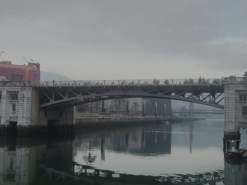Al llegar, todo en orden, buena temperatura, un poco niebla, que seguro iba a despejar, restos de las fiestas y botellones de Deusto, algún trasnochado y... hacia la salida.