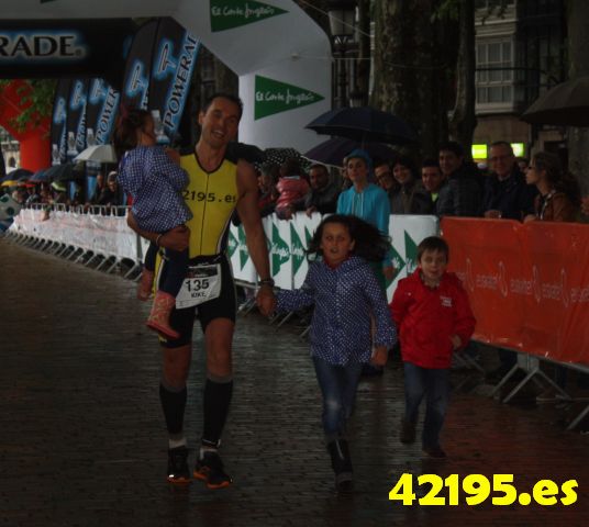 La ciudad fue tomada por más de 600 triatletas que se aventuraron a competir, donde tuvieron que nadar 1900 Mts. en la Ría, pedalear 90Km y finalizar corriendo media maratón. SI ya de por sí la gesta es importante, el añadido de la lluvia puso un puntito más de dificultad a la prueba.