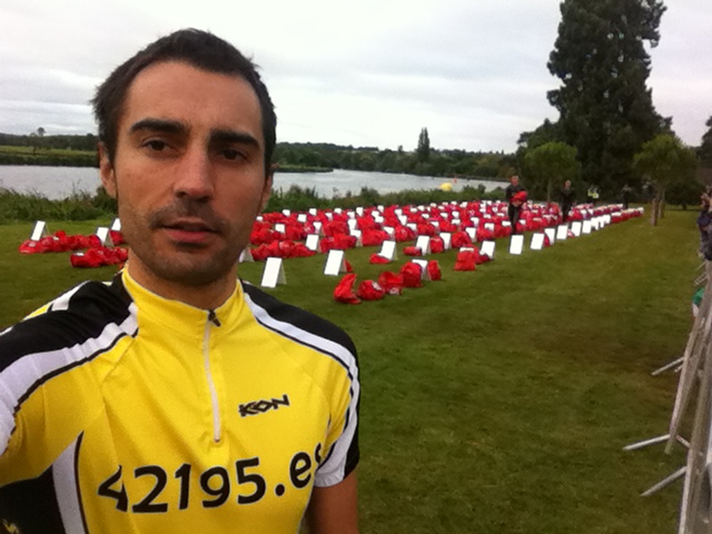 3,8 kilómetros nadando en el campo de regatas del río Thames. 180 kilómetros en bicicleta por el circuito cerrado de las colinas de Chiltern. Para terminar con 42195 metros por el paseo del río.