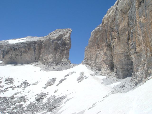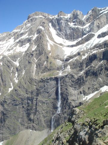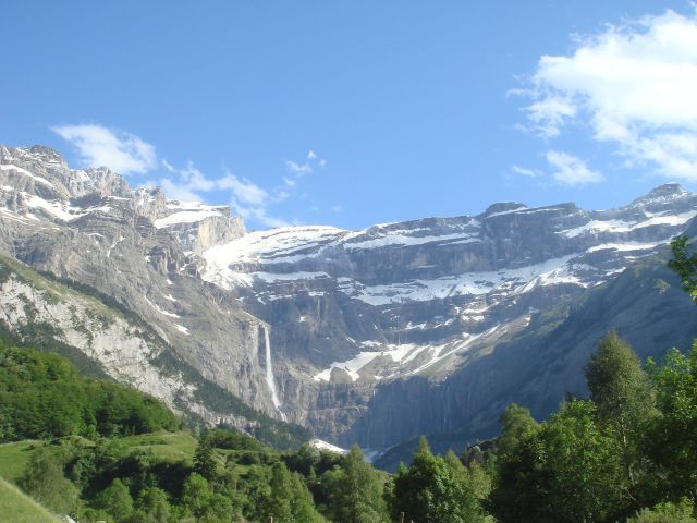 El Casco de Marboré es uno de los tresmiles que cierran, en lo más alto, las verticales paredes del Circo de Gavarnie. Accesible desde otros lugares más fáciles, nos decidimos a atacar su cima por la larga ruta que parte desde el pueblo de Gavarnie (1.365 m.) y que nos permitió adentrarnos en el valle y visitar la Cascada de Gavarnie, un salto de agua de más de 400 metros de altura.