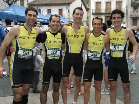5 fuimos los participantes del 42195 (Javi, Iñigo, Jon, Álvaro y Víctor, el que escribe) significativa representación dado que el número de corredores en estas modalidades es mucho menor que en las carreras populares, a las que estoy más acostumbrado. Uno de ellos, realizó los últimos 4km de bici con la rueda pinchada (no hay tiempo para cambiar la cámara y antes que retirarse…) Increíble.