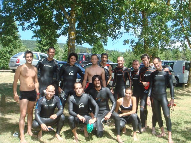El viernes nos juntamos un buen grupete de amigos en Landa para entrenar la natación en el pantano. El entreno se hizo sobre distancias 800 metros, 2.500 metros y 3.400 metros. Después de nadar, trotamos durante una horita por el paseo que rodea el pantano para soltar las piernas. Buen entreno y cervecita de premio.