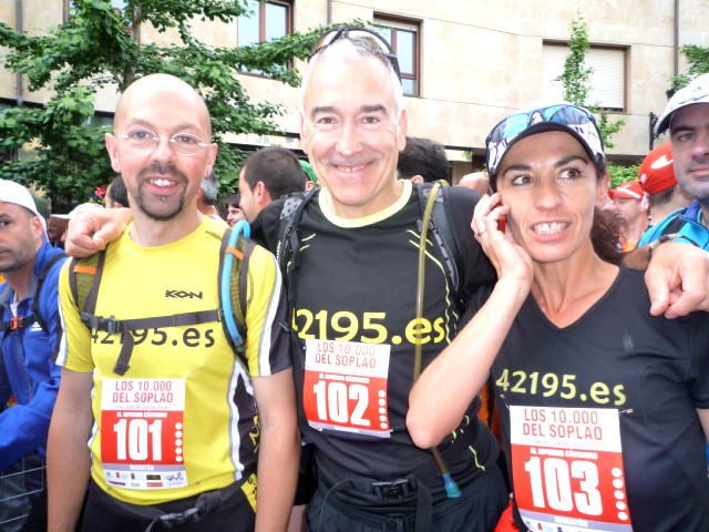 Te envió algunas fotos de vuestra hazaña en los 10000 del Soplao. Aunque todas están bien yo me quedo con la primera la salida 8:00 de la mañana, no os podéis imaginar la "envidia sana" que pasamos l@s que estamos viéndoos. Tenéis el corazón "a tope", ilusión, una meta que alcanzar y sobre todos una sonrisa de felicidad que no la recetan en ninguna consulta, esa os la habéis ganado por ser de otra pasta.