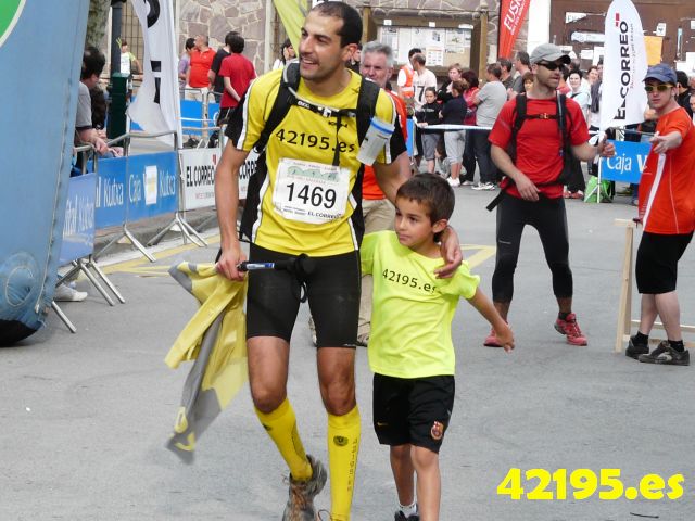 Y quedaba la guinda del pastel, mi hijo Alejandro esperándome para entrar conmigo en la meta. Antes me abrazo con Yosu, que se había retirado. Ultimas curvas con un publico entregado, veo a Begona, a Eneko, Guti y a mucha Mª gente, y final en meta ZULLE de nuevo, que Tio mas GRANDE!!!