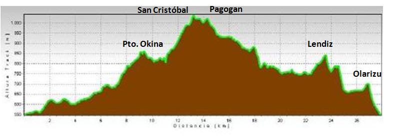 Casa de la Dehesa –Mendiola – Caserío Ullibarrigutxi – Puerto de Okina (1 avituallamiento) – San Cristóbal -Pagogán – Puerto de Vitoria (2º avituallamiento) – Léndiz-Kurutzmendi -Castillo (pueblo) – Cruz de Olárizu – Casa de la Dehesa (final y 3 avituallamiento).