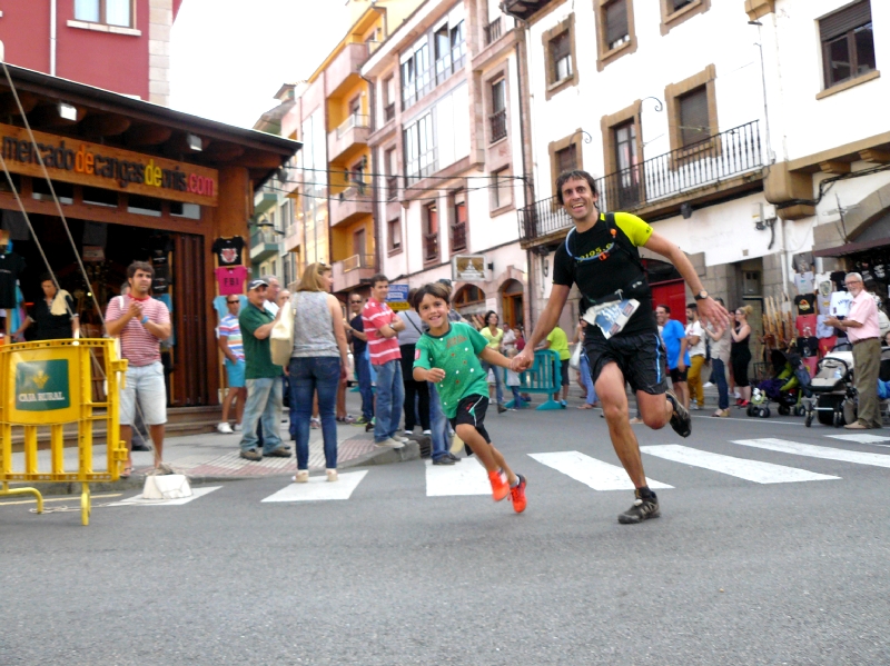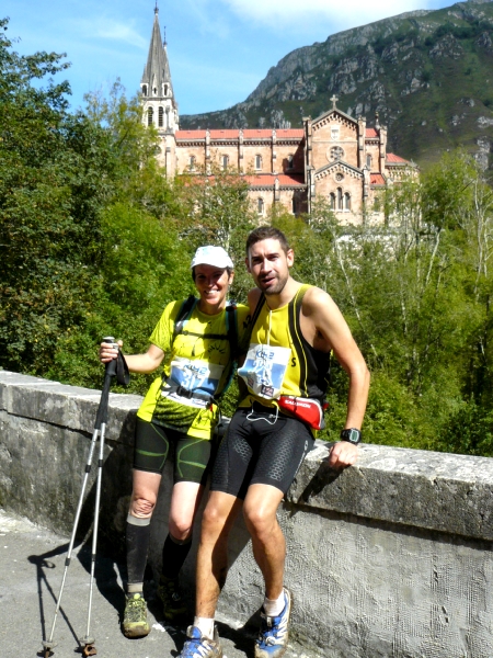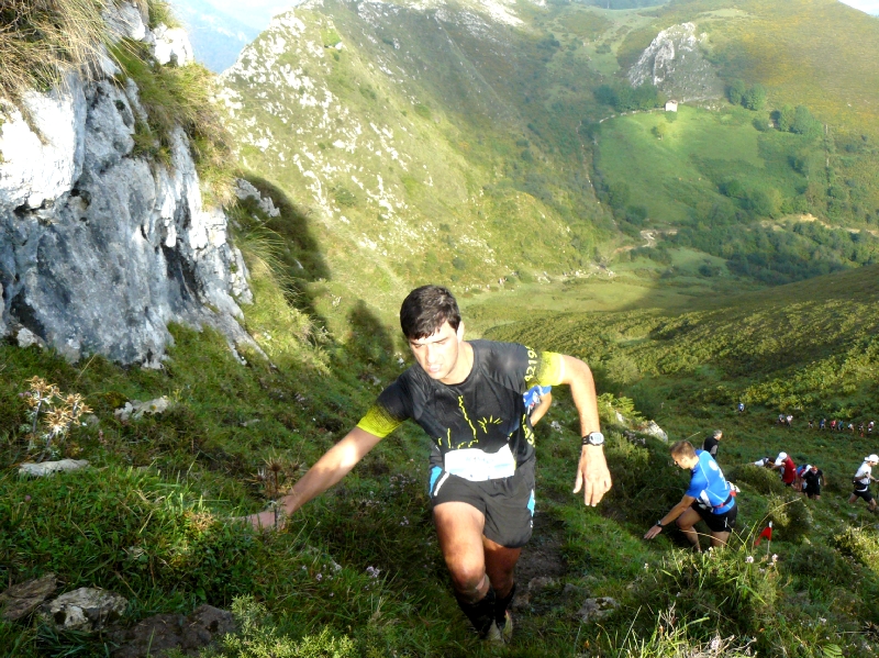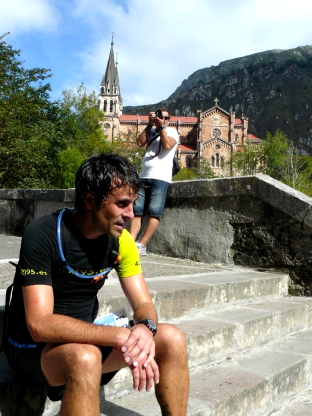 La carrera continua y poco a poco el calor va siendo mas acusado y pese a beber y comer con frecuencia noto que empiezo a no ir bien. Y es que tras la ascensión por la Minas de la Burrefera, el descenso por el Lago Enol y el posterior ascenso a La Porra de Enol me empiezan a aparecer calambres y veo que Txingurri se me escapa visualmente poco a poco. La bajada hasta Covadonga (Km 25) es bastante técnica con lo que no me da lugar a descargar los músculos y llego muy cansado. Tortxu me dice que Txingurri también venía tocado. A posteriori y comentando ese paso por Covadonga bastantes coincidimos en lo exigente del descenso y en que íbamos con el gancho ya en ese punto.